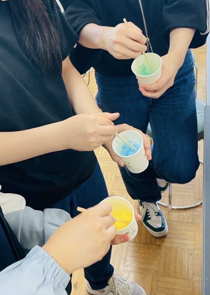 作ったバスボムをみんなで混ぜたら・・・どんな色になるかな?色の変化を見てみよう!たくさん作ってお家に持ち帰ることもできます。ぜひ家族で楽しんでくださいね。