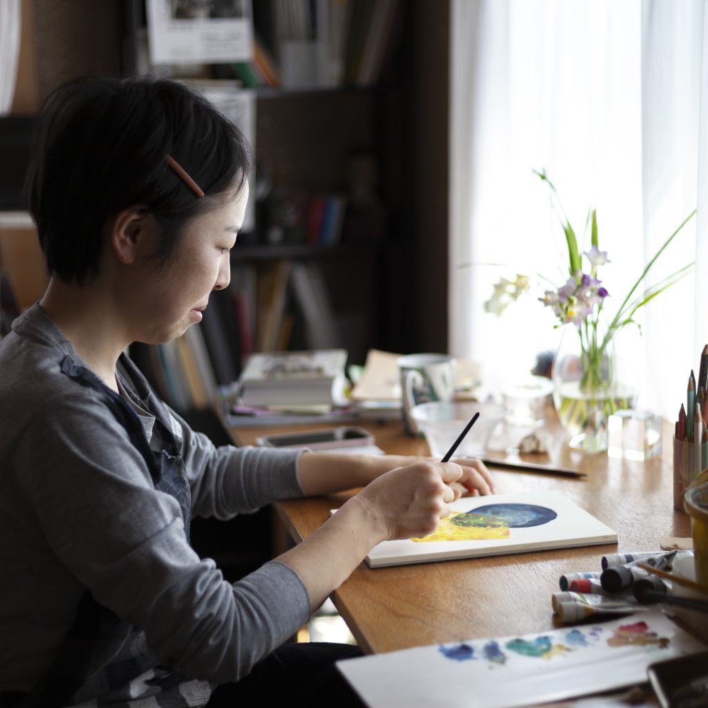 絵を描いたり、それをオブジェやアクセサリーに仕立てたり、ワークショップを開いたり、絵のまわりであれこれ活動しています。