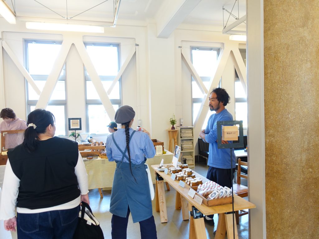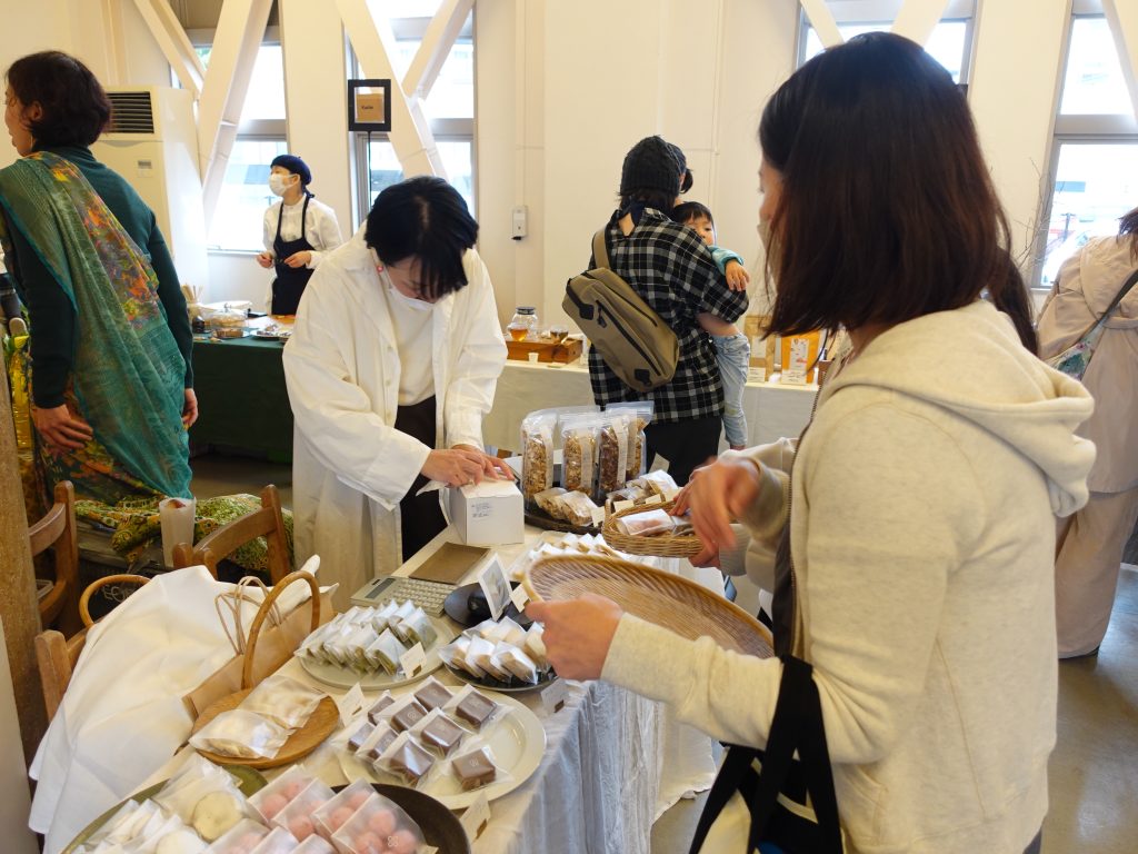 奇数月の第3土曜日に鴨江アートセンターの1階ロビーで開催している朝市「かもえのあさいち」。野菜やくだもの、お茶やコーヒー、焼菓子など、浜松市内・近郊から生産者・出店者を迎えて開催しています。