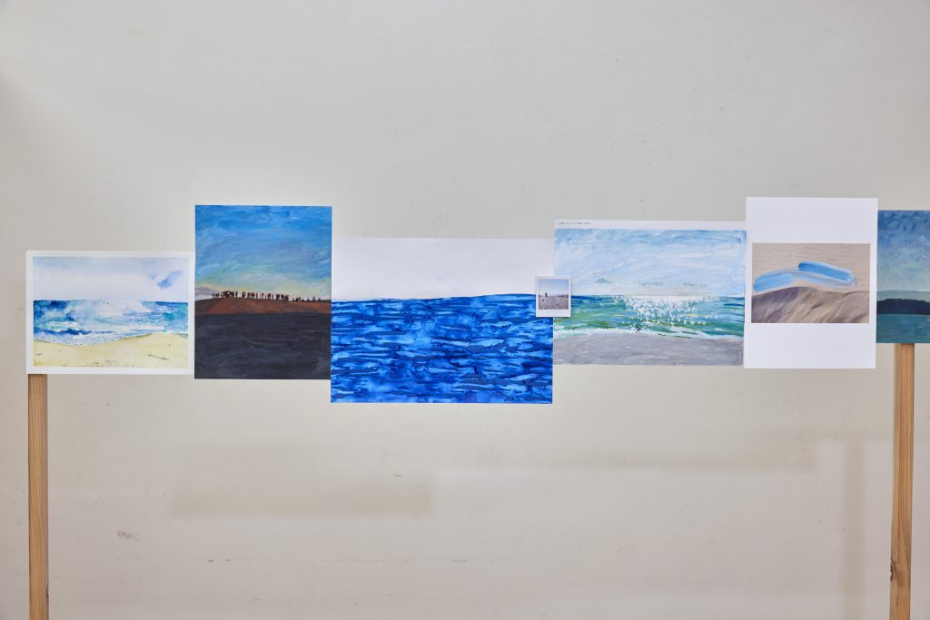 鴨江アートセンターの階段の踊り場にある4つの飾り棚“ニッチ”にて、アーティストの林満里奈さんが韓国・釜山市で開催された「UNDER39 Art Fair」(2025年12月5日(金)~14日(日))に出展した際に行ったライブペインティングで制作された作品を展示しています。釜山の海とイチョウの街路樹から着想した本作を通して、釜山の風景を覗くことができます。ぜひ、トークと一緒にご覧ください。